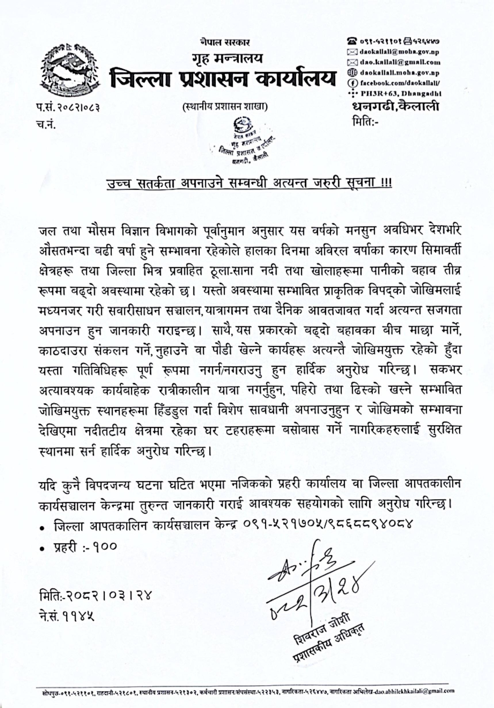 © सर्वाधिकार सुरक्षित जिल्ला प्रशासन कार्यालय,कैलाली