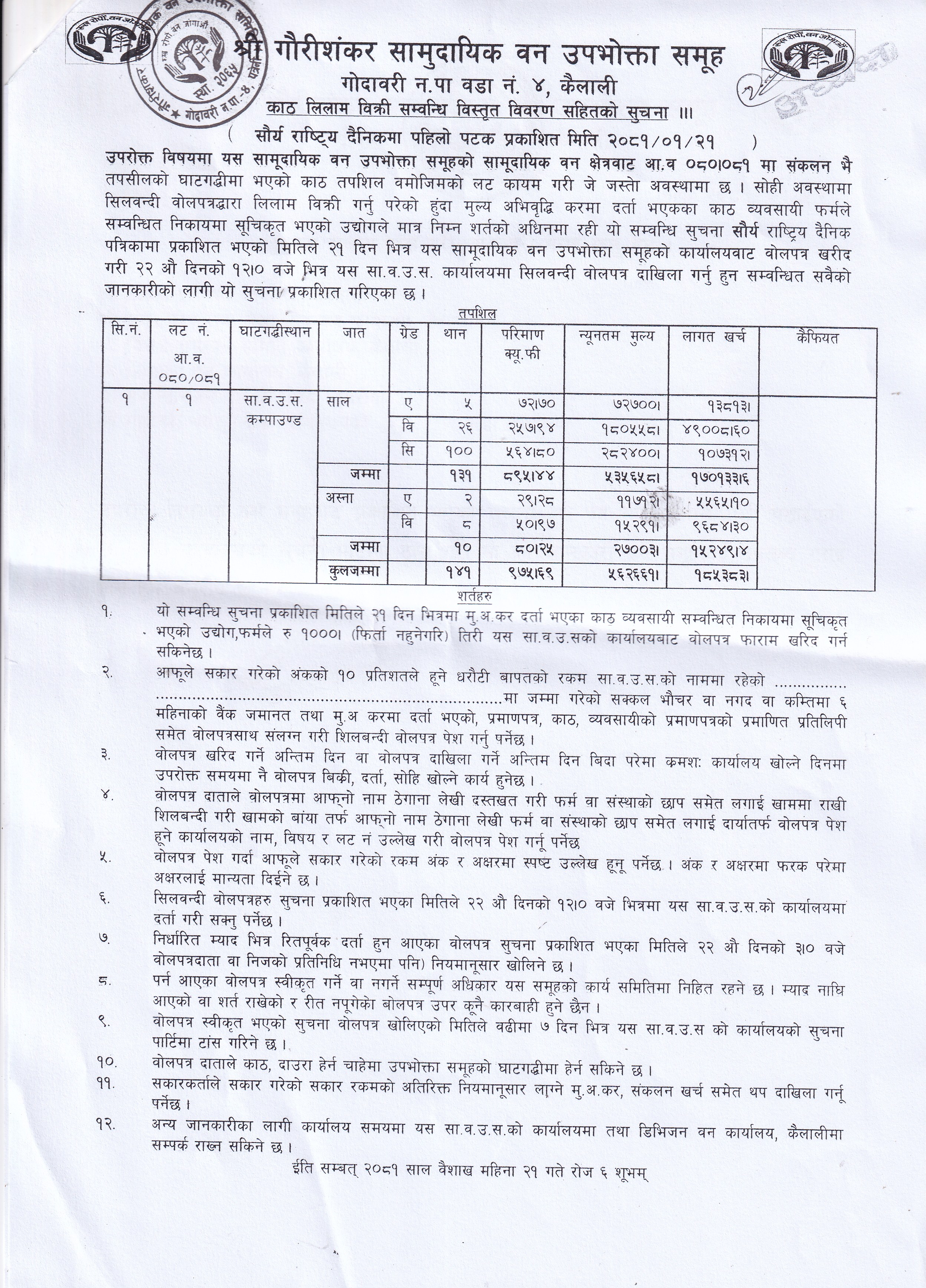 डिभिजन वन कार्यालय धनगढीको सूचना ।