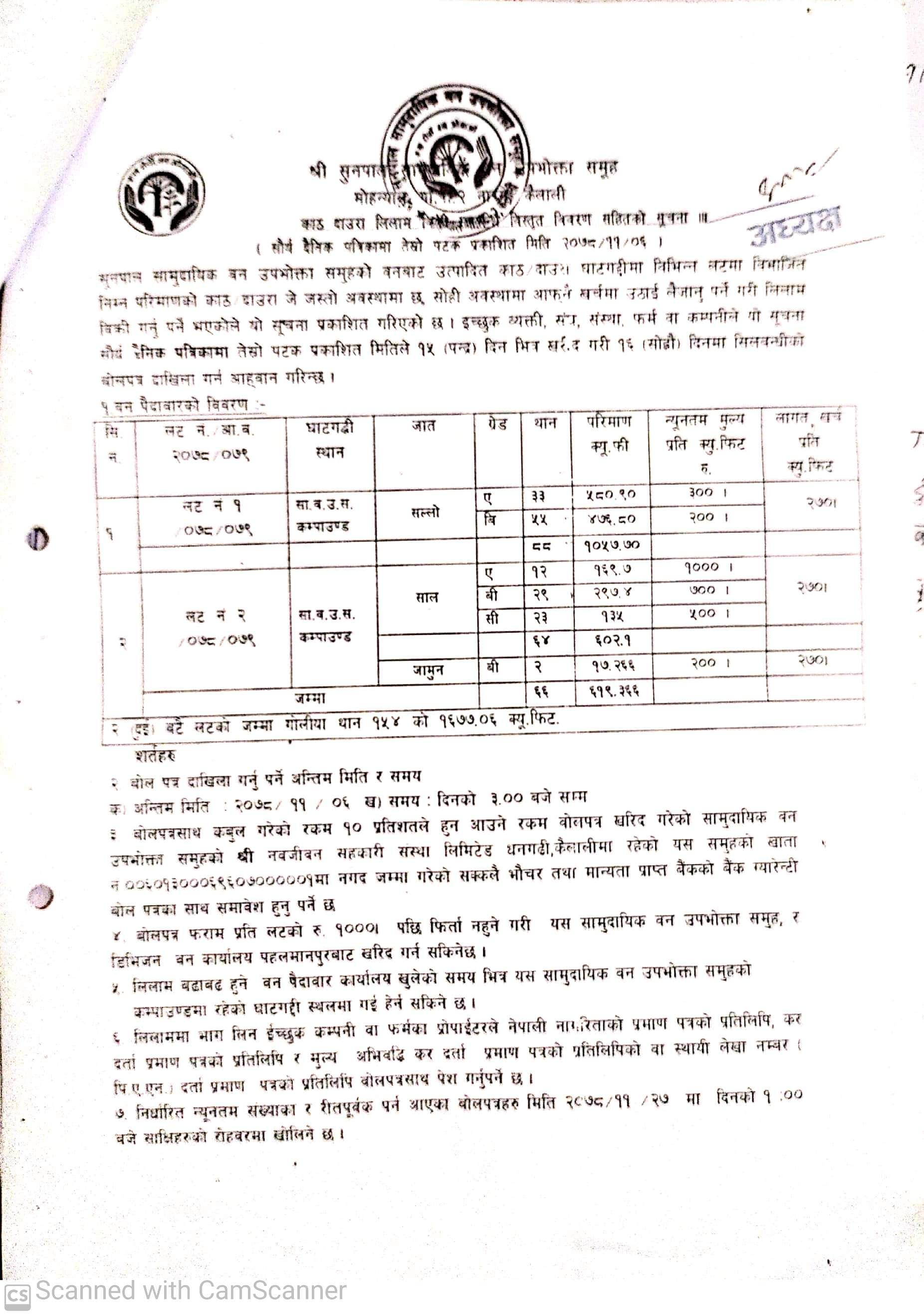 सुनपाल बन उपभोक्ता समूह मोहन्याल कैलालीको सूचना ।