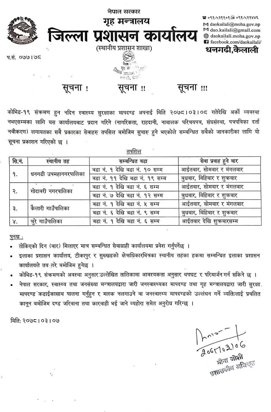 सेवा प्रवाह सम्बन्धी सूचना २०७८।०३।०७