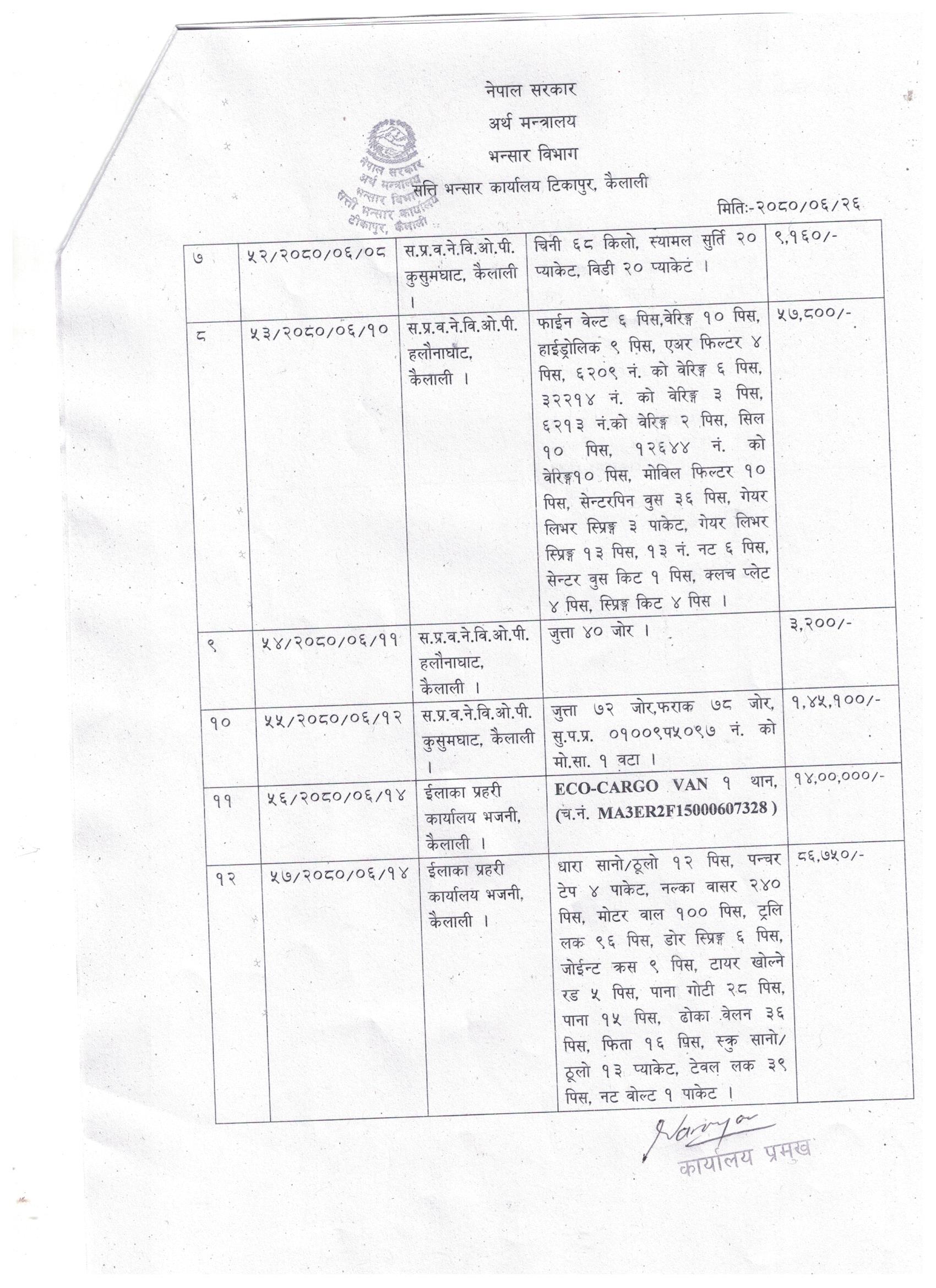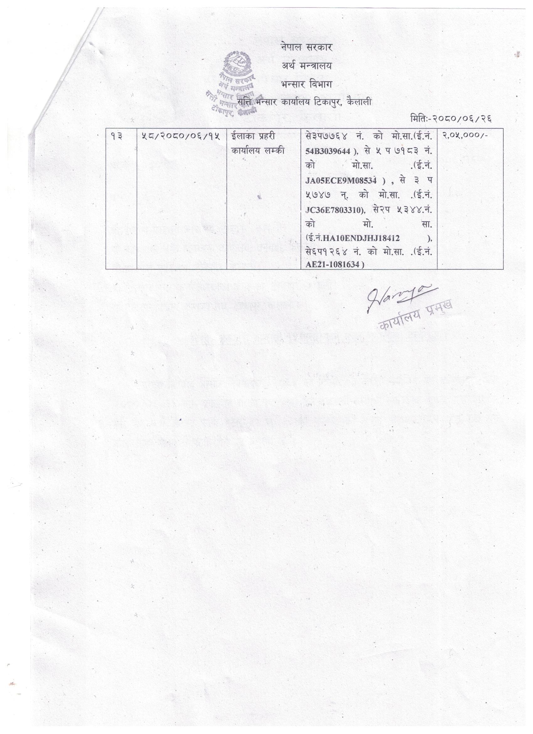 सति भन्सार कार्यालय कैलालीको सूचना ।