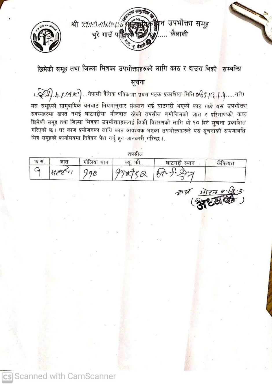 श्री जनकल्याण सामुदायिक वन उपभोक्ता समूह चुरे गाउँपालिका कैलालीको सूचना ।