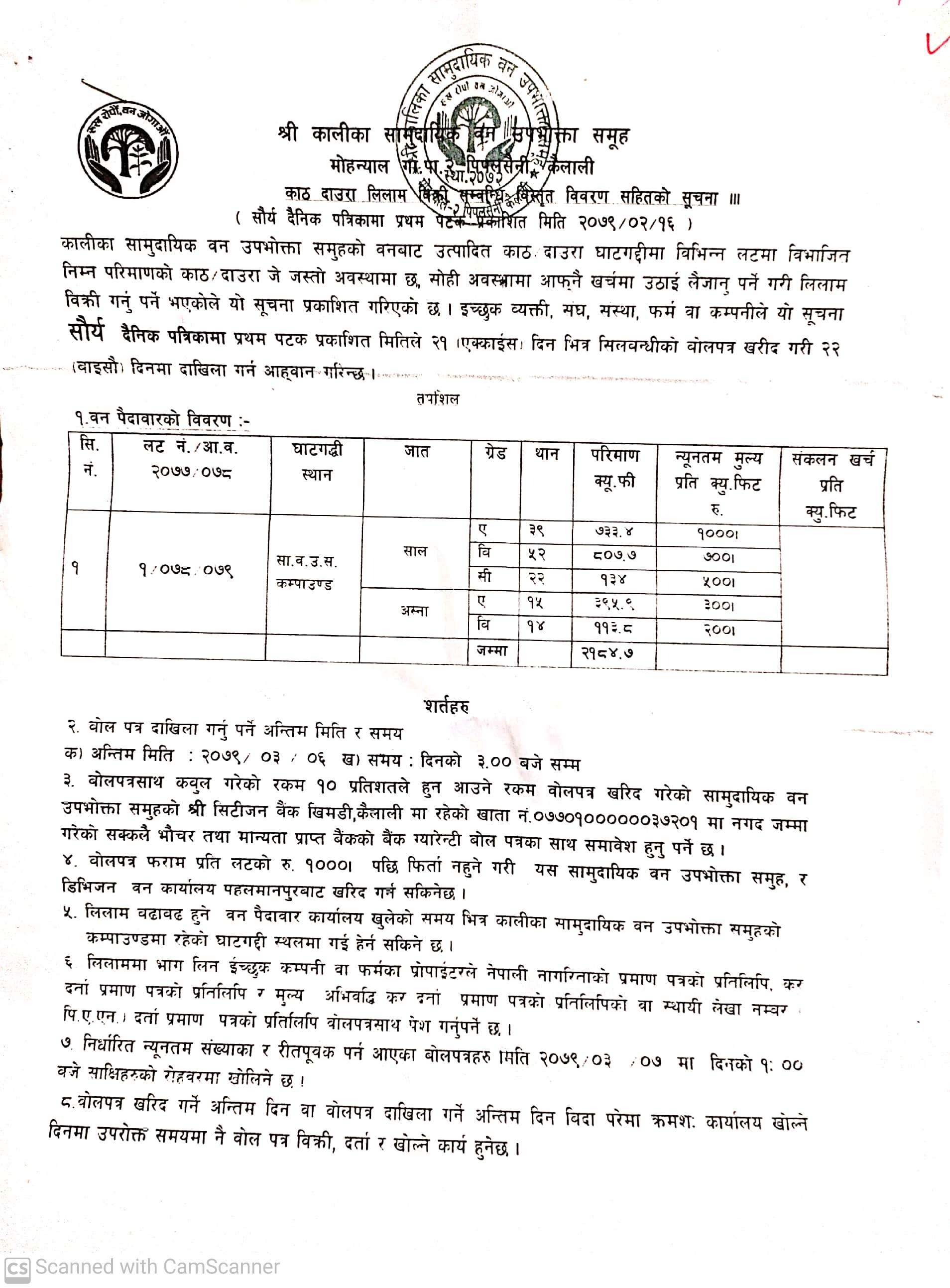 श्री कालीका सामुदायिक वन उपभोक्ता समूह, मोहन्यालको सूचना ।