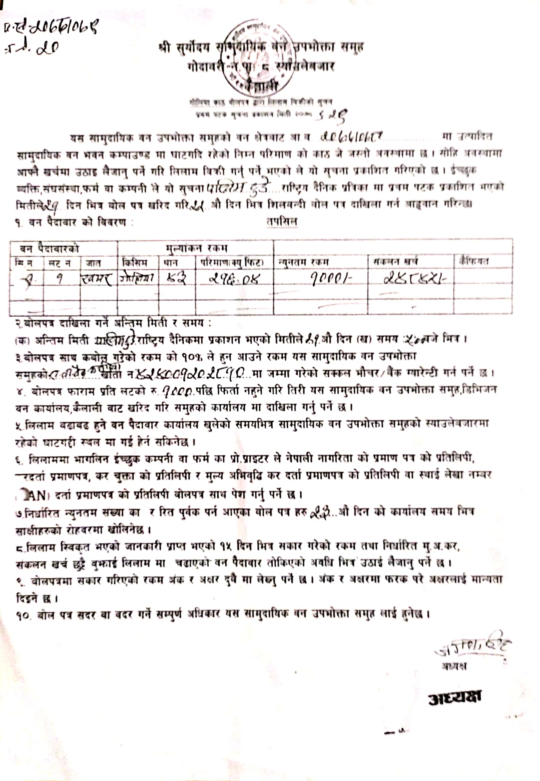 श्री सुर्योदय सामुदायक वन उपभोक्ता समूह, गोदावरी स्याउलेबजारको सूचना ।