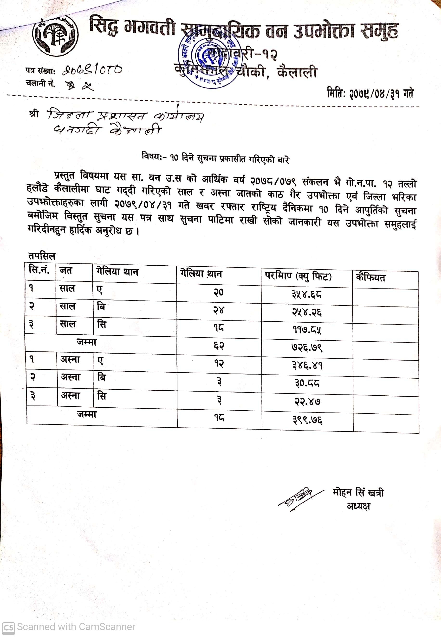 सामुदायिक वनको सूचना । थान १