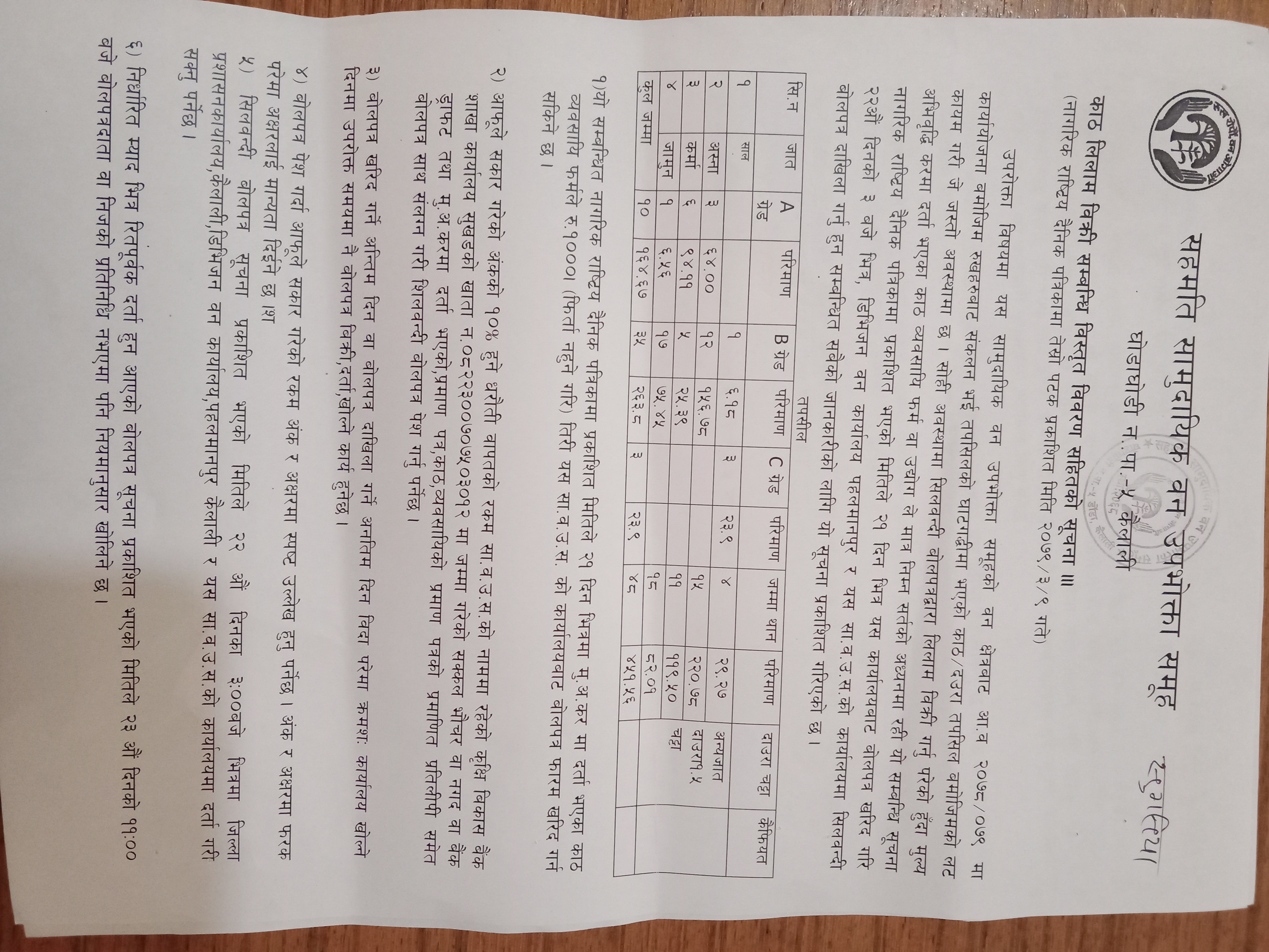 श्री सहमती सामुदायक वन उपभोक्ता समूह घोडाघोडी कैलालीको सूचना ।