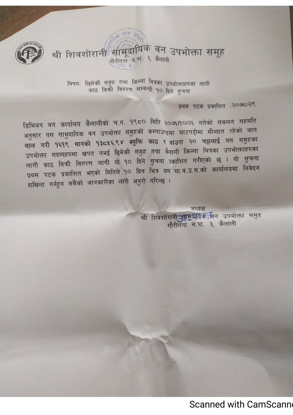 सामुदायिक वनको सूचना । थान १