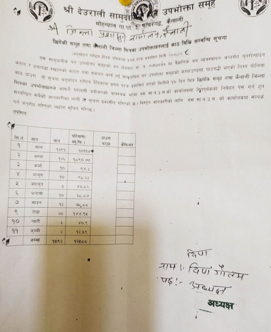 देउराली सामुदायिक बन उपभोक्ता समूहको सूचना
