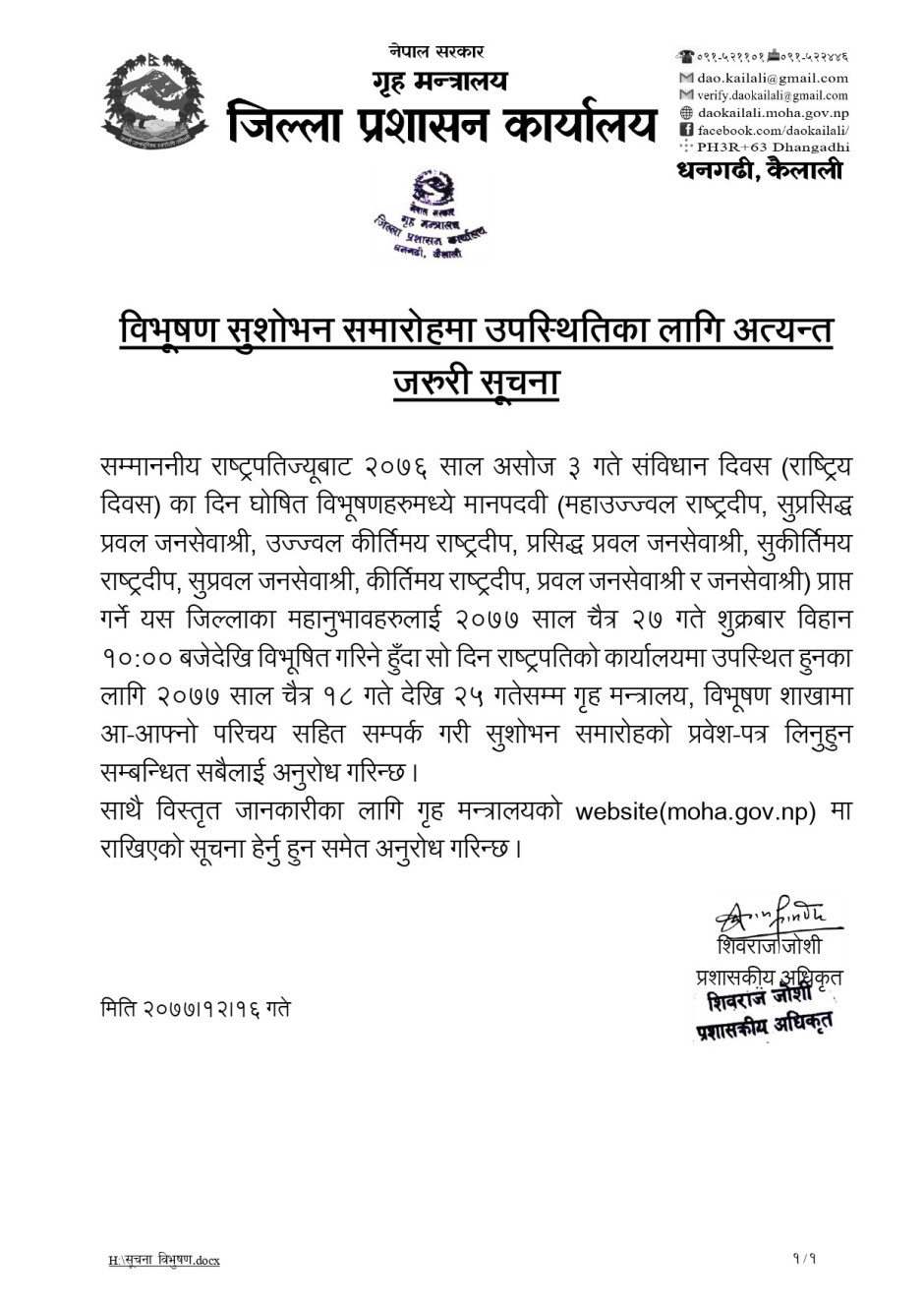 विभूषण सुशोभन समारोहमा उपस्थितिका लागि अत्यन्त जरुरी सूचना (२०७६)