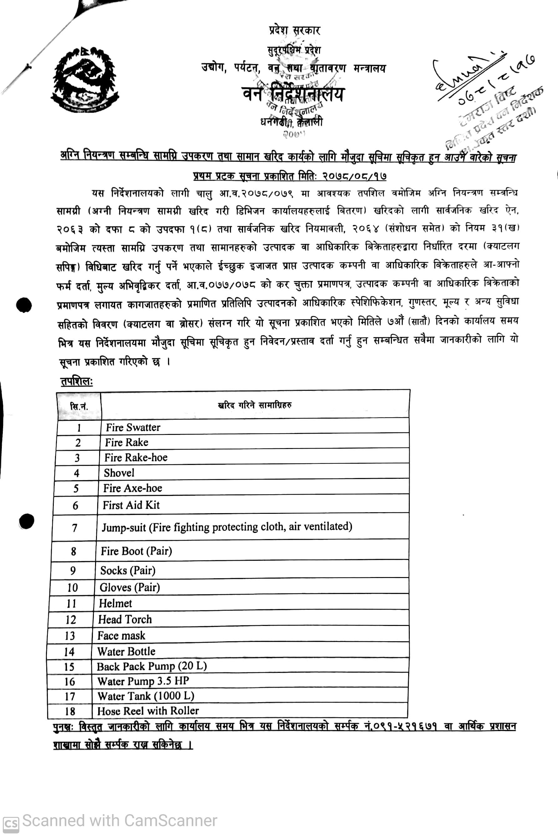 वन निर्देशनालय धनगढी कैलालीको मौजूदा सूचीमा समावेश हुने सम्बन्धी सूचना ।
