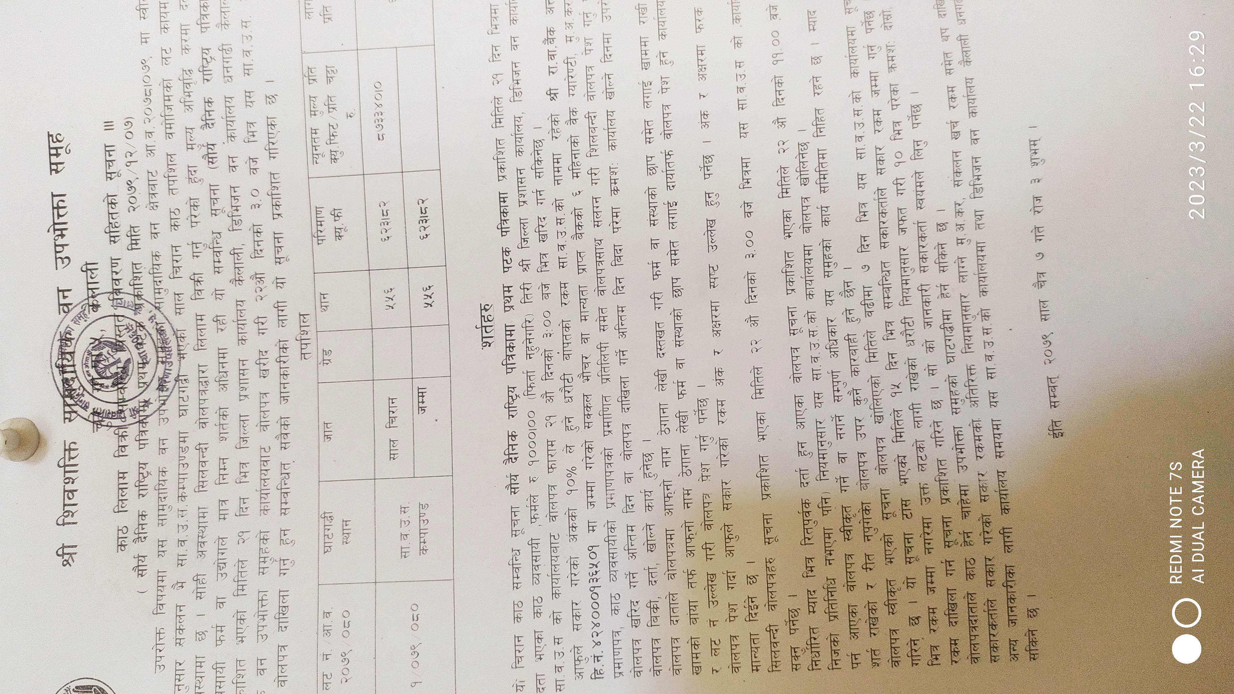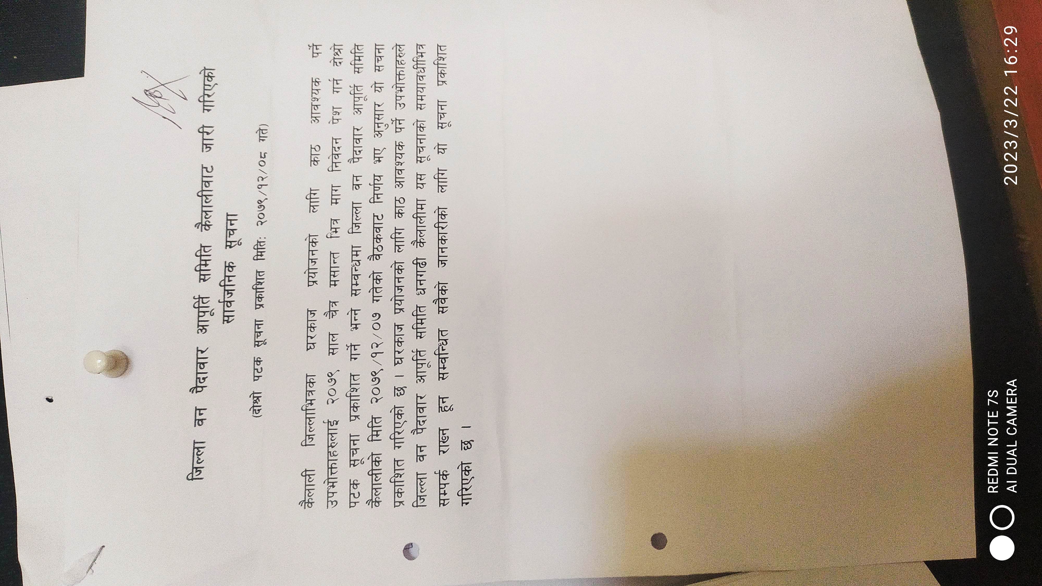 डिभिजन वन कार्यालय धनगढीको सूचना ।